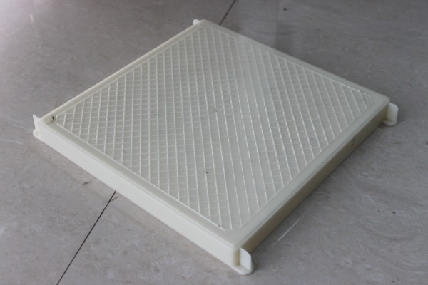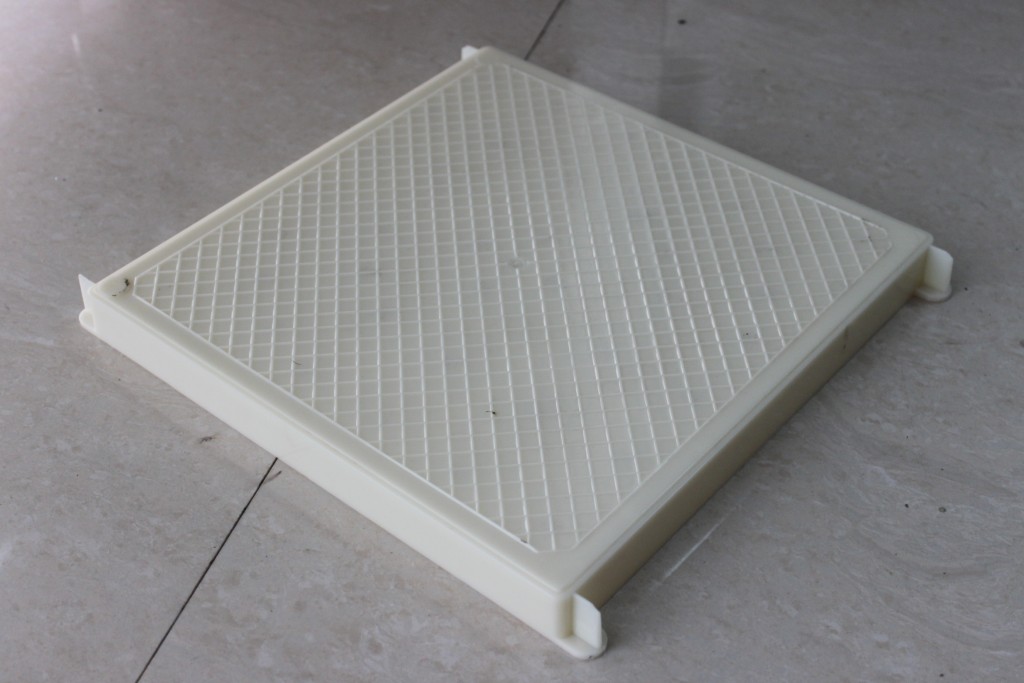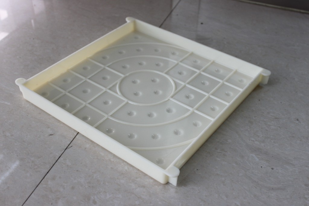 國外西班牙客戶定制帶盲點的彩磚塑料模盒,塑料原料采用質地較優的全新ABS原料,所澆筑彩磚成品表面更為光潔,完美。彩磚磚面小圓點設計針對城市步行道路面及盲道鋪設更為專業,防滑,導盲優勢明顯。