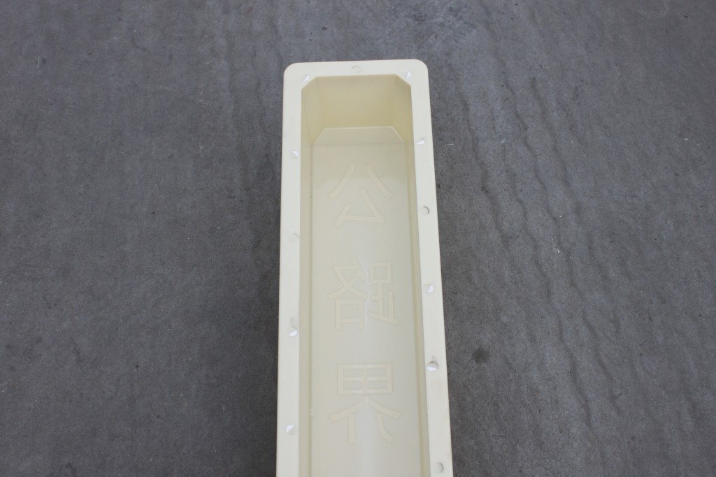 國家高速公路專用標準尺寸規格的水泥公路界界樁模具,采用ABS塑料以注塑加工方式一體成型。外表周邊均已長短不一加強筋設計,保證此水泥界樁模具的整體牢固度,在模具內部則有標注“公路界”文字。