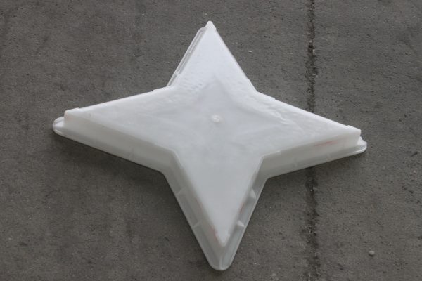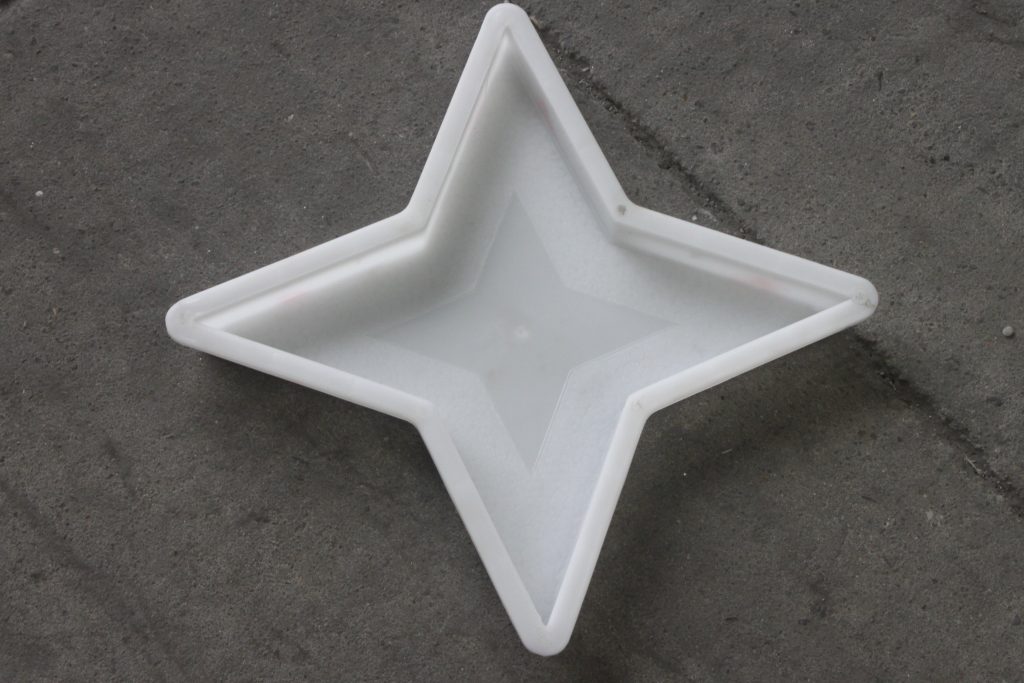 從表面上看,四角星圖案由里到外整體設(shè)計,不論在外形還是內(nèi)在裝飾圖案上,均是如此。細節(jié)之處在于在塑料彩磚模盒內(nèi)部以光面和毛面的四角星型圖案組成,在實際預(yù)制完水泥彩磚后,起到美觀及防滑效果,深受施工方青睞。