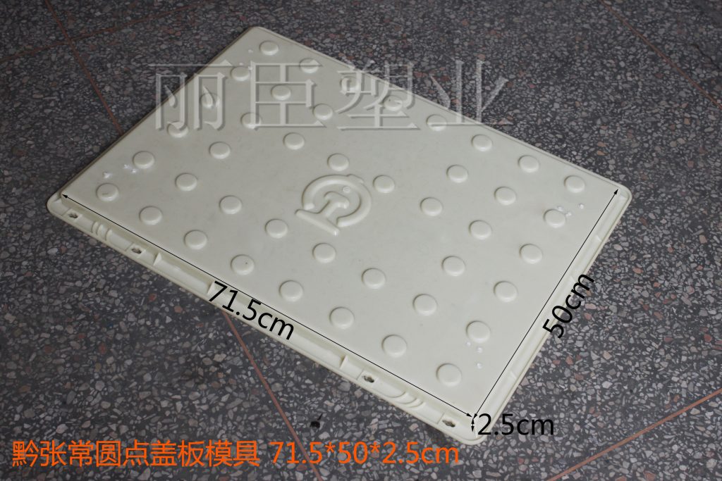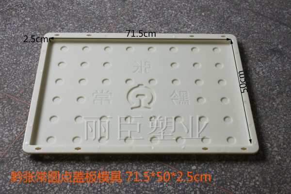 黔張常高速鐵路專用水泥蓋板模具,主要樣式印有鐵路圖案標志及“黔張常”字樣,整體以圓點防滑設計,采用此水泥蓋板模具所澆筑成型水泥蓋板表面圓點突兀,圖案及字樣清晰且脫模更易,是一款非常優質的ABS塑料蓋板模具。