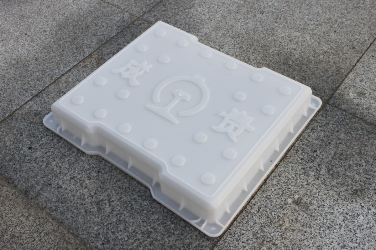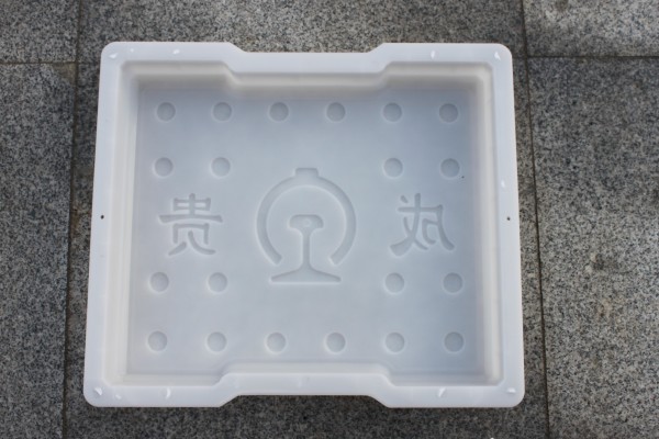鐵路蓋板模具中圓點設計可以有效的起到步行防滑作用,鐵路圖標及“成貴”字樣標示此款產品為中國鐵路成貴高鐵線專用溝蓋板塑料模具