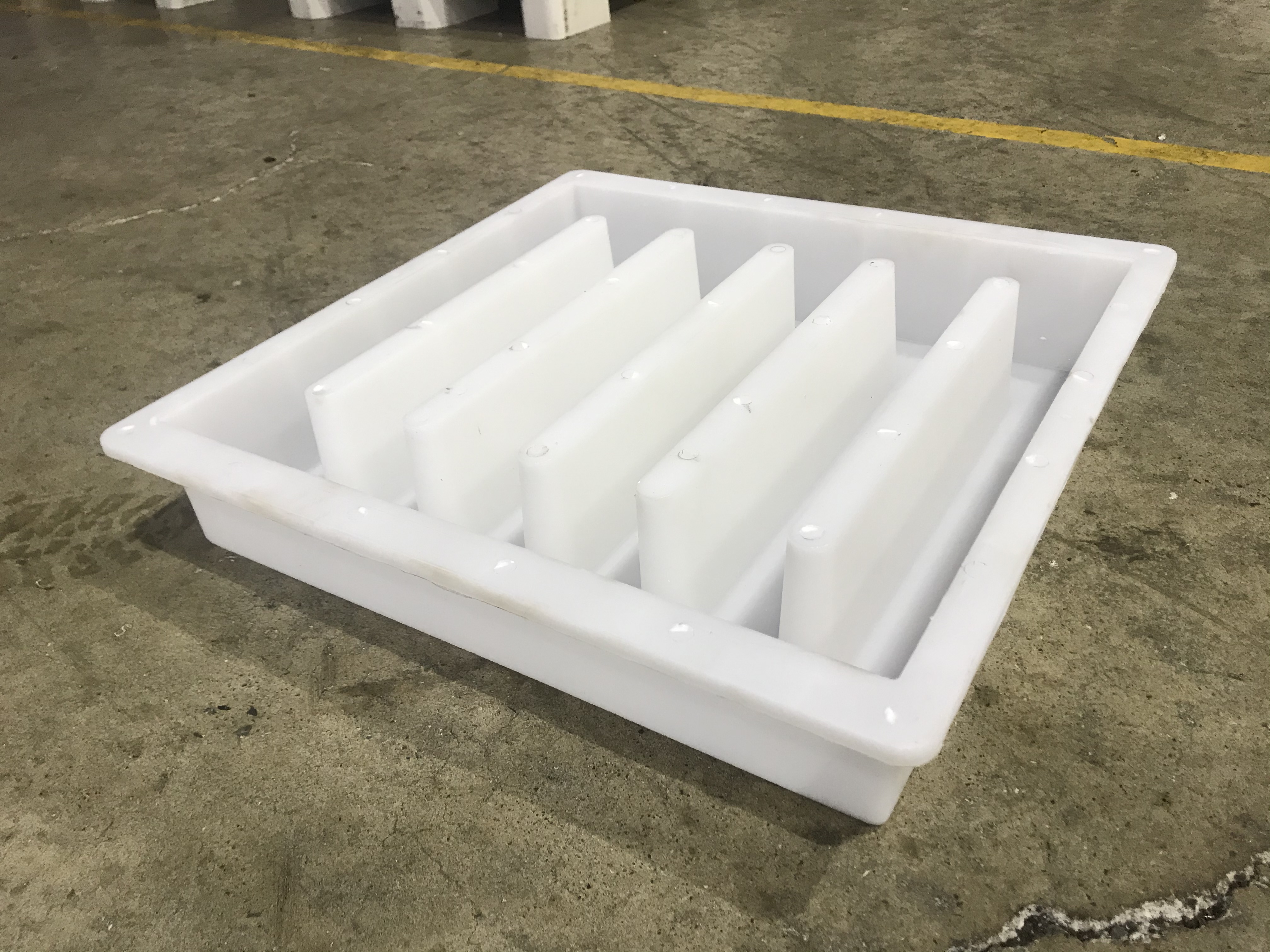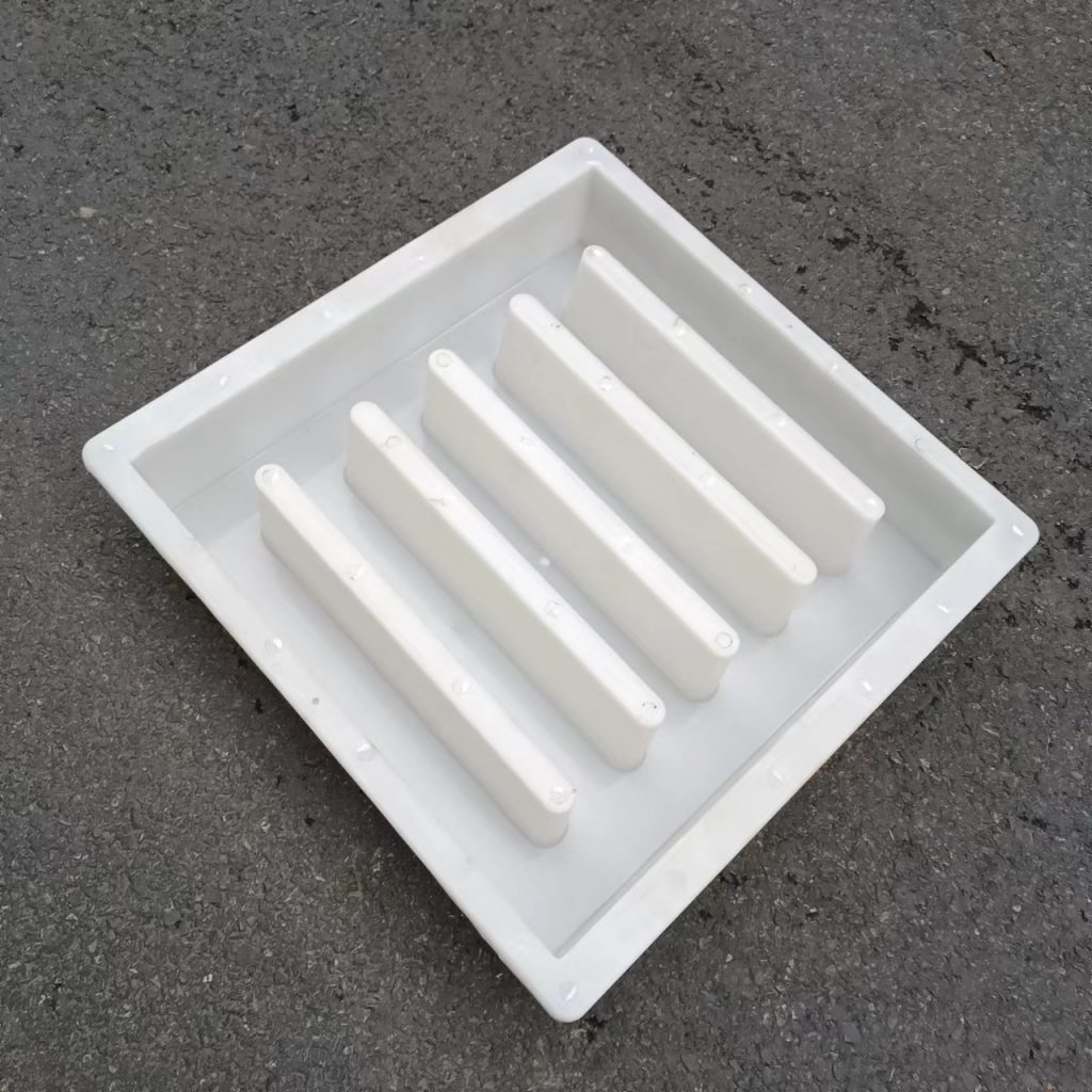 帶有五孔的雨水蓋方形塑料模具,尺寸為50x48x10.